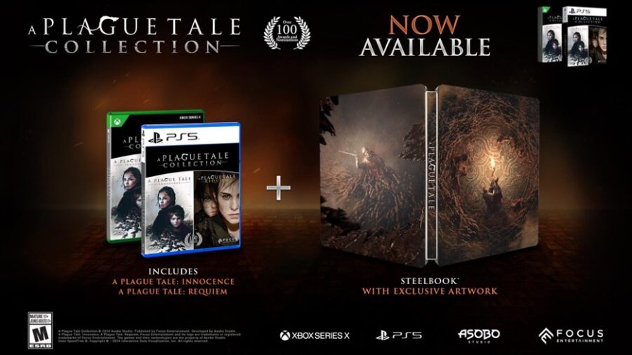 Focus Entertainment and Asobo Studio are pleased to announce the release of the “A Plague Tale: Collection” physical bundle for PlayStation 5 and Xbox Series X. This collection includes the two critically acclaimed games A Plague Tale: Innocence and A Plague Tale: Requiem, plus a SteelBook® with exclusive artwork, and is now available at participating retailers. Embark on a heartrending journey and discover the cost of saving those you love, as you play Amicia on a quest to help her little brother Hugo survive.