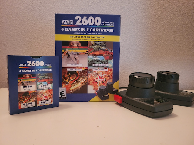 So we have looked at the controller set, but what about the games that are included in this bundle? Well the set comes with a four in one cartridge featuring four classic paddle games. The games that are on the cart are Night Driver, Canyon Bomber, Breakout, and Video Olympics.