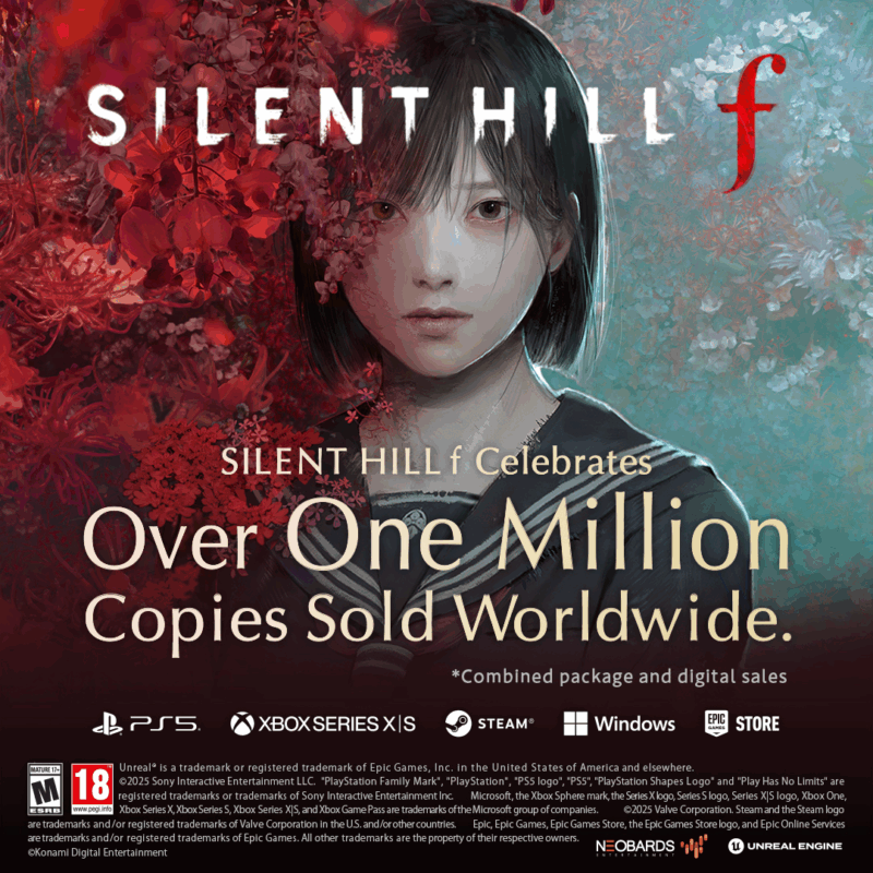 Konami Digital Entertainment B.V. (KONAMI) today announces that SILENT HILL f has already reached one million units sold worldwide. Having launched on September 25th, this figure reflects digital and physical sales on PlayStation®5, XBOX Series X|S, Steam®, Epic Games, and Microsoft Windows.